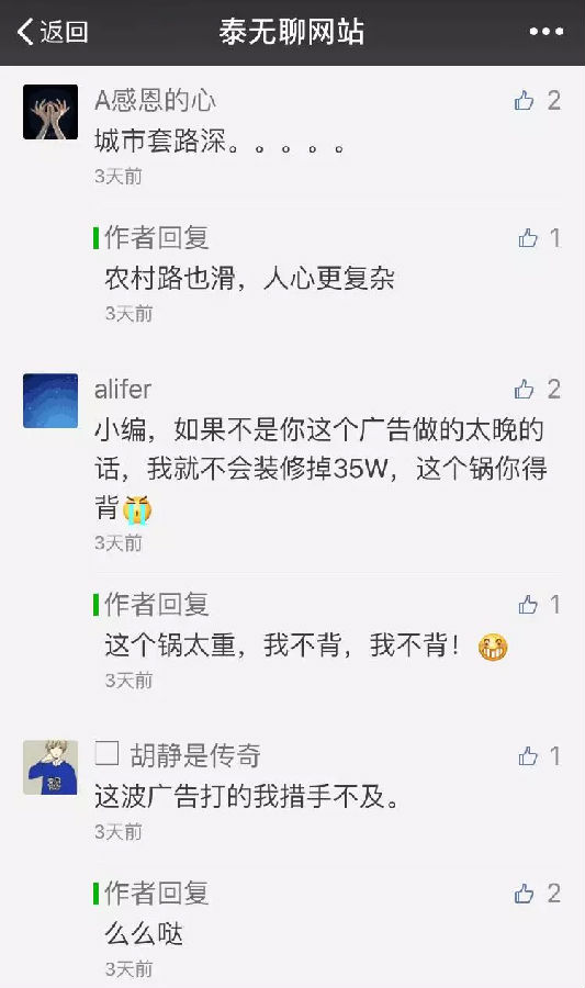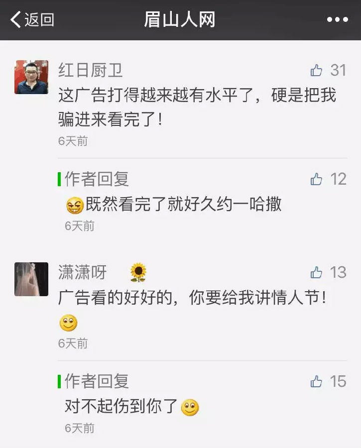 很多自媒体或地方站公众号,宣称自己的内容及平台“有温度有态度”。我想这些细节,反而能格外让网友感受你的“温度和态度”。要做到用户喜欢你的内容一样爱上你的评论区,不如从一条留言回复开始。抖个机灵,说个段子,偶尔做做贴心小棉袄,和用户做朋友,才能获得用户的尊重和喜爱~但是,一定要不断积累并逐渐形成运营者的独特风格。当然,并不是所有的留言都有必要回复,如何把握这个“临界点”,需要小编根据自己的内容及风格确认。