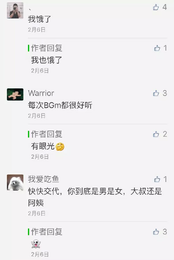 除以上公众号,经常和网友互怼的槽边往事,抖机灵的papi酱等公众号评论区也同样有趣。据说如今评价一个公众号,不再是看冷冰冰的阅读数了,你能得到多少个赞,有多少网友愿意看完后在评论区花上 1 分钟打一些文字回复,有多少网友愿意在评论区抢沙发,成了新的判断标准。
