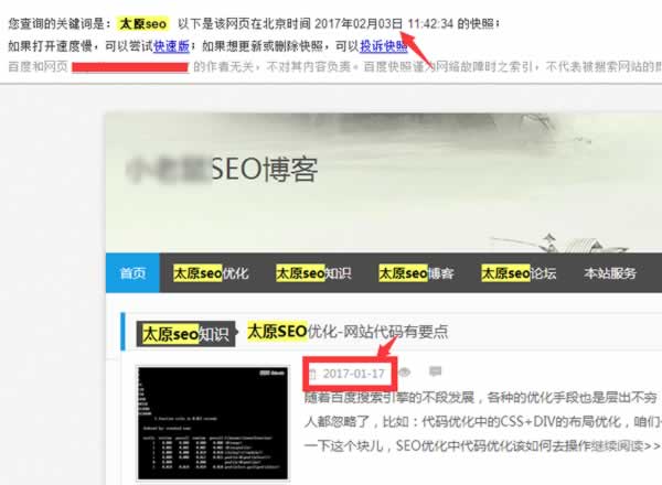 2、然后我们记录好站点的快照时间以及最后更新文章的时间节点,保证页面没有被蜘蛛抓取更新过和页面做过内容变动(达到实验的最佳效果),如下图所示:
