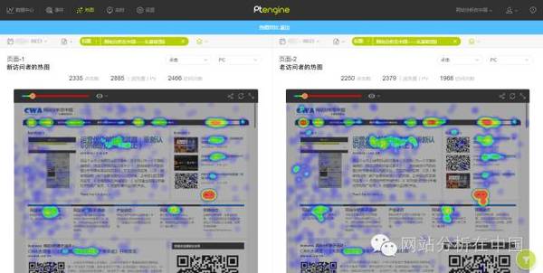 有多少种方法切分人群,就有多少种人群去值得用热图描述。简单讲,新访问者和老访问者,他们与网站(或app)的互动行为有何区别?或者,从搜索引擎来的访问者,和从社交媒体来的访问者,他们的互动行为有什么区别?