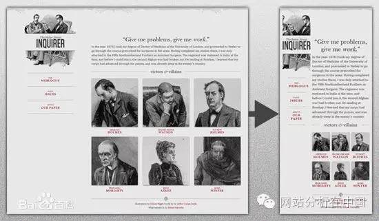 热图要面临的最后一个挑战,是响应式页面。关于响应式页面,很容易理解,就是 那些同一个页面在PC、tablet和mobile phone上都能自动改变展示方式,以最优化的布局显示页面的一类网站。与响应式相对的是死板的页面,这些死板的页面无论在什么终端上都是一样的(所以在 手机上就变得特别小,不放大什么也看不清)。下图展示了一个响应式页面的例子(图片来自百度百科)。更多的关于响应式页面的介绍可以看百度百科: (http://baike.baidu.com/link?url=r-Zdw8RwzQkxLGMzTuLs_Jw687gJgv- GtZRHFcs_–D5Ynsmw6GlU0v36CqXkrd-5VVYNhOdxmMsOJwR60emMq)