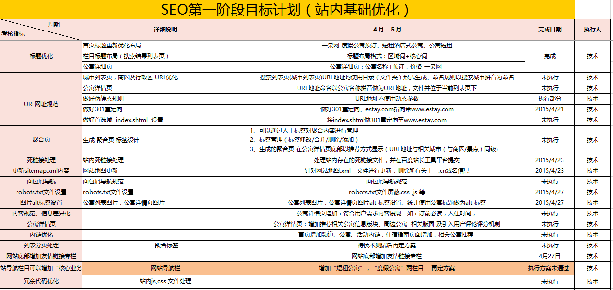 当然如果是传统企业 执行计划 就变得不那么重要了,所以用了大致一周左右时间整理了一份网站优化计划。