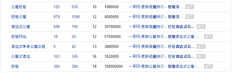 3、短租酒店式公寓=可以通过分词 酒店式公寓,短租酒店式公寓,短租酒店,短租公寓