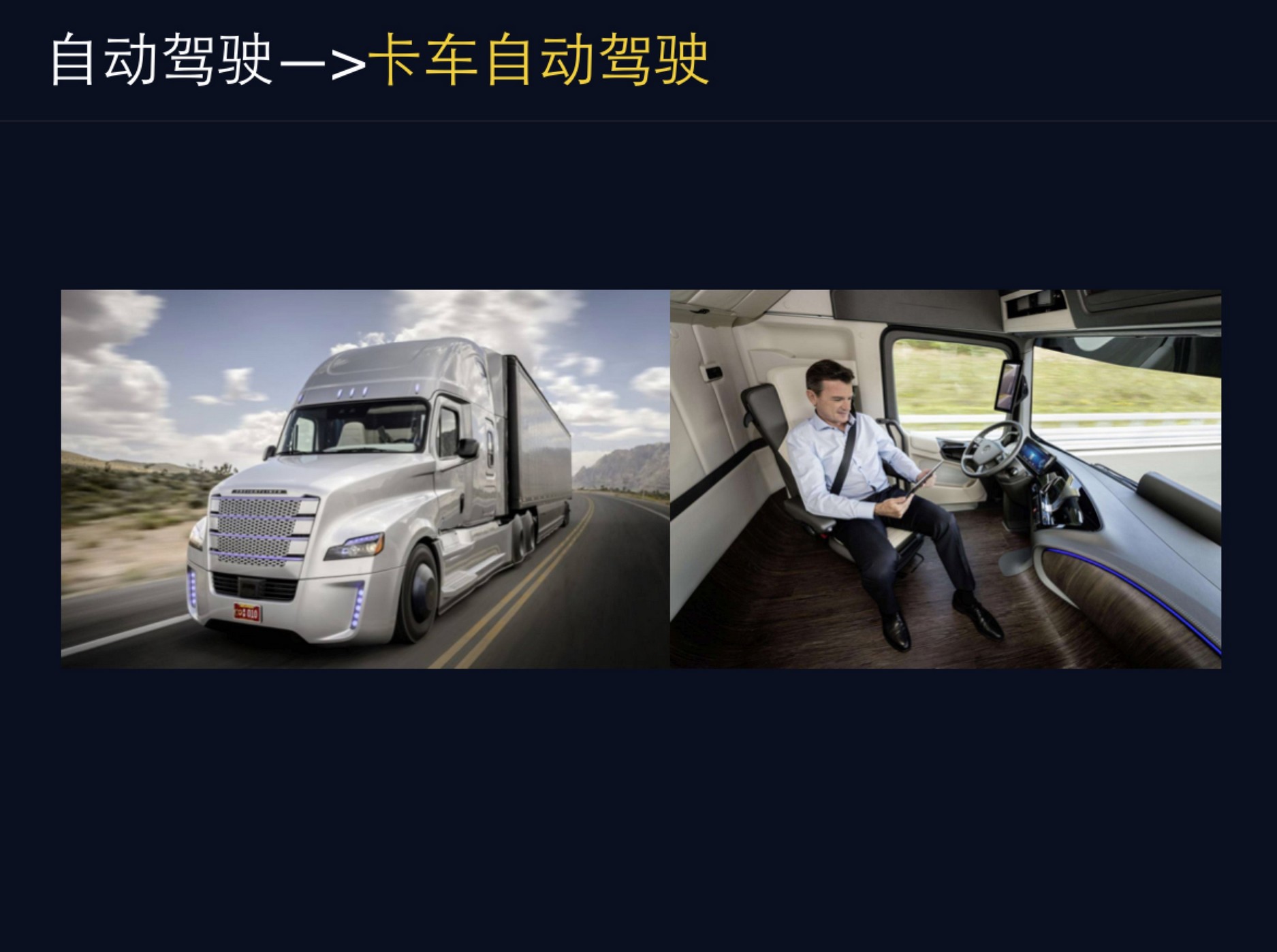 自动驾驶,长期价值毋庸置疑,但民用车的自动驾驶,中短期内难以落地;反而是“卡车自动驾驶”能在短期可行,因为能减小卡车车队在城市之间运输行驶的成本。
