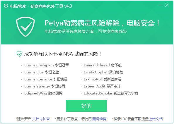 (腾讯电脑管家Petya勒索病毒免疫工具)