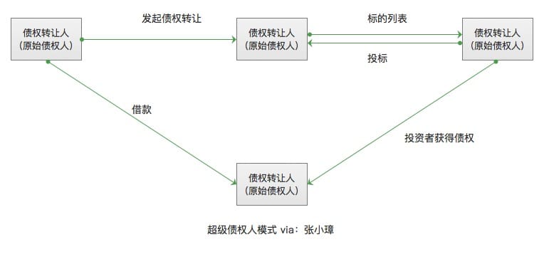 「超级债权人」模式又叫「专业放贷人」模式,我们可以将其理解成是一种特殊的「普通债权转让」模式。这种模式在「普通债权转让」模式的基础上,融入了一个「超级债权人」(「专业放贷人」)的角色。