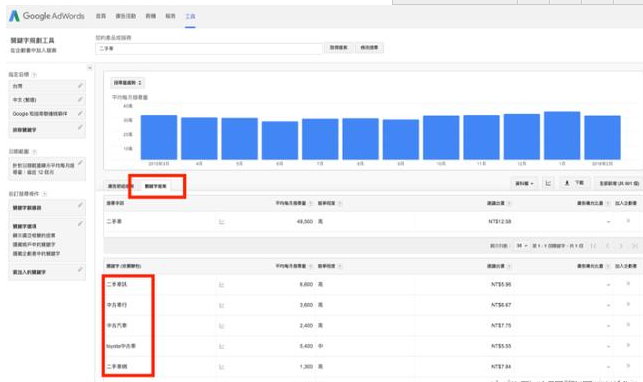 这两个数据可以判断这些关键字是否适合做为你的长尾关键字,再纳入自己的关键字架构当中。