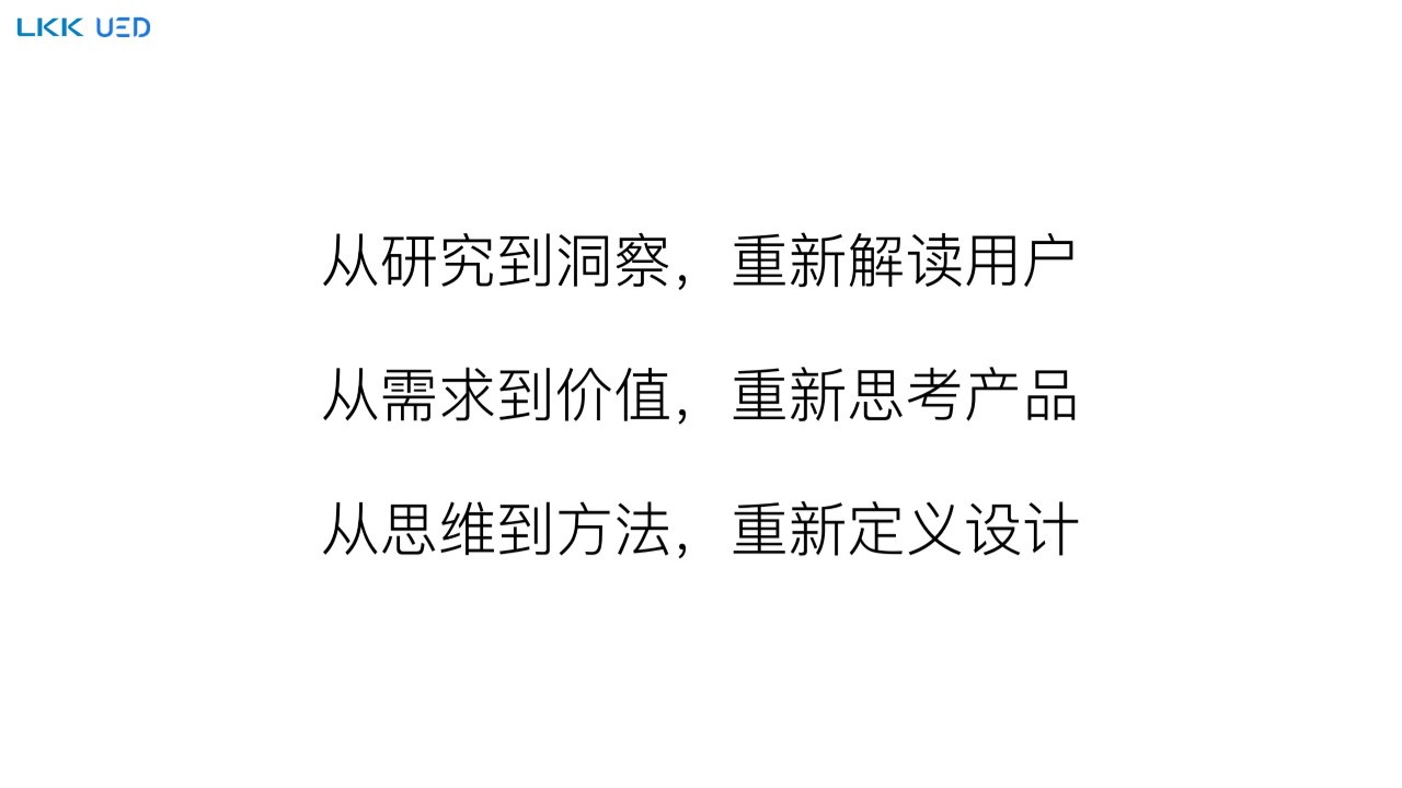 第一层面:从研究到洞察,重新解读用户。比如分享案例的产品功能上从纯粹的室内定位导航工具,变成了基于labs的轻社交倾向的产品。在产品人群上,开始针对的是路痴宝宝,后面它会变成一个喜欢新鲜事物的接口,它的群体会扩大,产品未来的可能性会有一个更大的空间,这是通过用户洞察对产品的价值提升。第二层面:从需求到价值,重新思考产品。你的产品现在解决的这个需求是不是核心需求,它能够给用户带来什么样的价值,甚至说在整个产品行业认知上它能不能带来一些改变,带来一些更有价值的东西,所以这一块是我们重新去思考产品的一个核心点。第三层面:从思维到方法,重新定义设计。我们用什么样的方法,用什么样的思维习惯去做更好的产品创新,能更深的挖据用户本质的需求和核心体验。