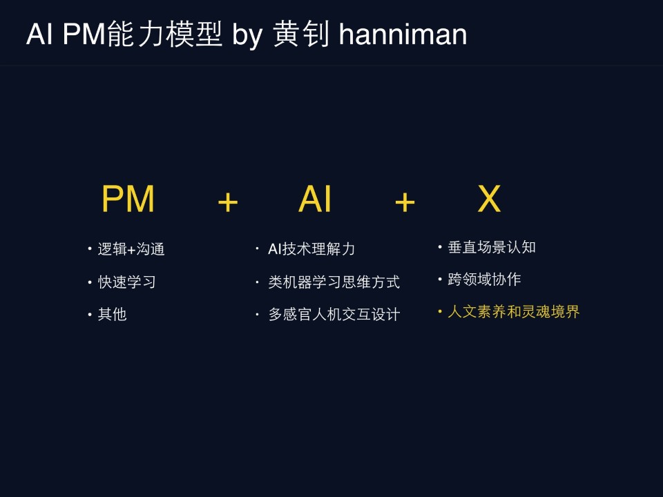 AI PM特别稀缺,现阶段AI技术的发展程度其实已经不影响PM去做一些demo和验证工作了;想要从纯技术角度去打造一个非常完美的产品架构是不太现实,反而需要PM从实际的场景出发,根据用户反馈倒逼技术去优化算话和数据模型;团队的升级,相比于个人升级困难的多。尤其AI PM的稀缺才是现在AI行业发展的痛点,但行业在这块儿几乎是空白。现阶段AI PM的能力、分类,包括从互联网转型到AI PM没有一个标准,甚至AI PM的概念也是最近三个月才被普及和接受的。