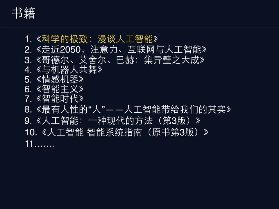现在很多朋友说AI很感兴趣,但是真正重要的是说兴奋之后,具体做到什么东西用行动来。比如书单大家可以到处去找,但是有没有去一本一本去深入看。这里我个人是比较推荐《科学的极致:漫谈人工智能》,这本书比较适合PM看的,很通俗易懂的方式,把AI里面的一些最关键的概念给提纲挈领讲一遍。