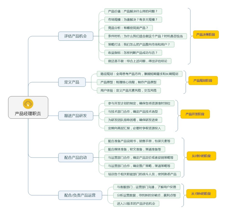 对某个产品或者产品上的一整条业务线负责,拥有责任范围内的决策权有小弟要带人了,要对团队的整体产出负责了,工作中附带管理职能了一个合格的产品经理,工作职责是什么?