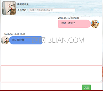 (2)点击列表里的顾客进入右边的对话框界面,显示与该顾客的聊天信息