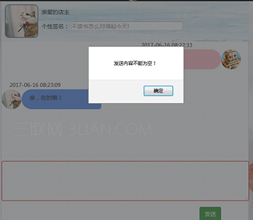 如果发送内容为空,则会提示“发送内容不能为空!”