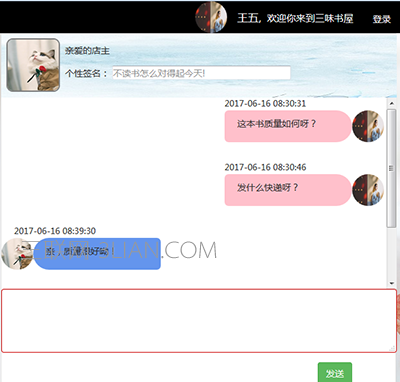 (1)在左侧有一个列表 ,会显示所有与店主对话的顾客;该列表可以移动;有新消息时会提示;也可以清空该聊天记录