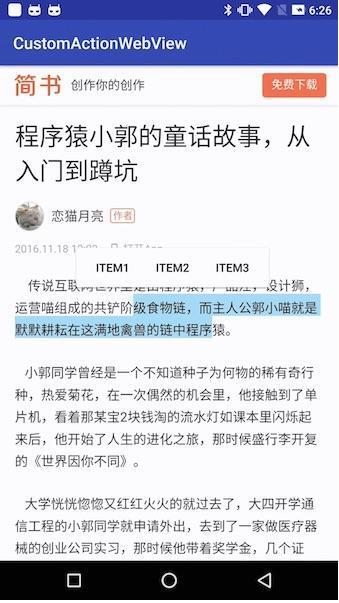 如果感兴趣的,可以下载demo看下,同时CustomActionWebView也封装好了远程依赖,欢迎使用。