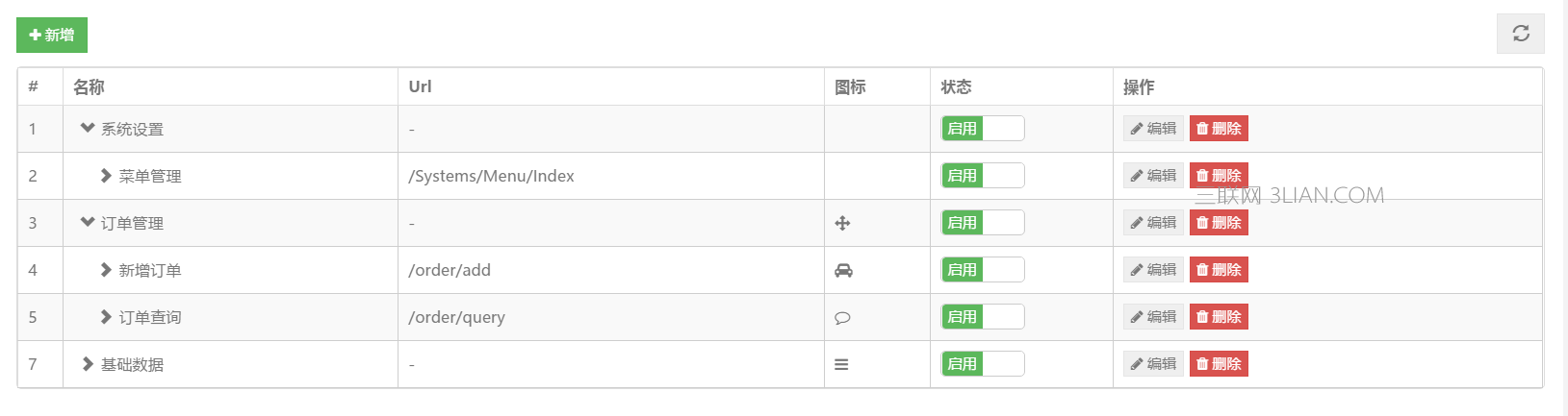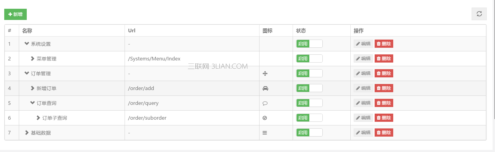 {Id: 3, Name: "订单管理", Url: null, ParentId: null, Level: 1, CreateTime: "2017-05-31 17:05:27",…},