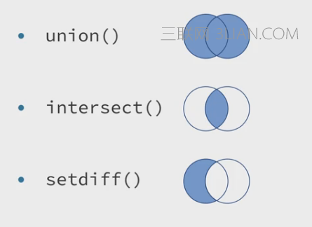 dplyr提供了intersection、union和setdiff用于获得数据集的交集、并集和差集。