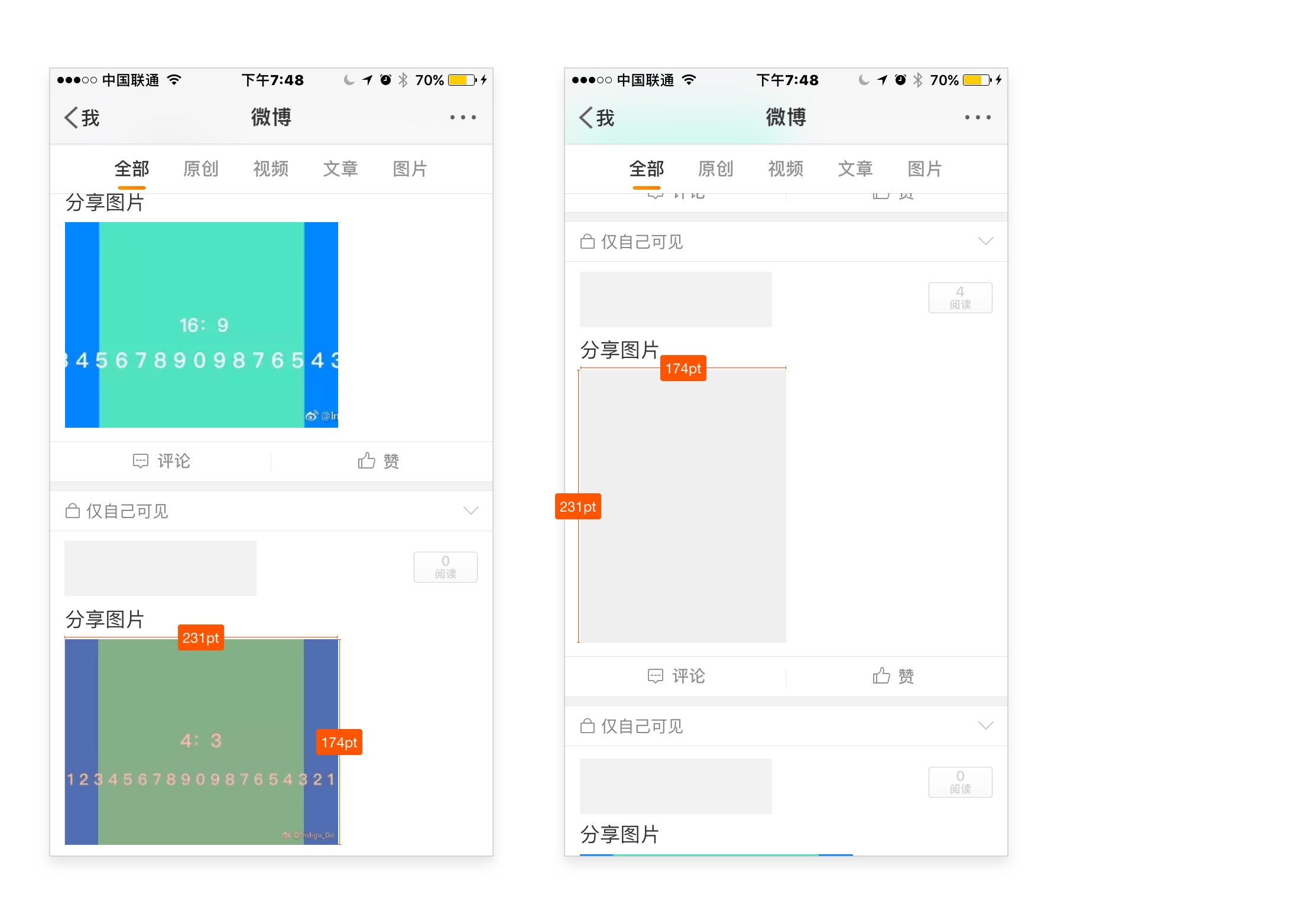 所以设定多大的宽高阈值取决于我们的 App 的使用场景和我们的取舍,是经常出现图片还是偶尔出现,是想在一屏幕中更多的展示图片数量,方面用户快速浏览时检索定位,还是希望缩略图展示更明确的信息。