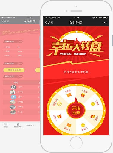 商家对奖品、中奖率进行设置,客户通过转动转盘进行抽奖;