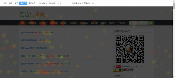 热力图同时还能告诉你,页面的哪些部分吸引了大多数访客的注意。这对那些对web分析数据没有什么经验的站长或管理员非常有用。