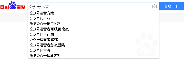 再比如输入“公众号运营”关键词时,我们会发现用户还希望了解“公众号运营方案”、“公众号代运营”、“微信公众号推广技巧”等内容。