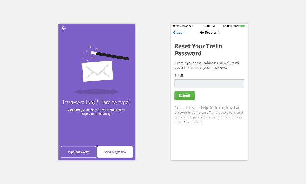 没人愿意重置密码,除非登录失败或者账号被盗。这么看来,如何帮助用户在不重置密码的情况下登录进去呢?发送一个短链接,允许用户不重置密码而直接登录。提示:利用好细微文案,但要和整体的语调保持一致。