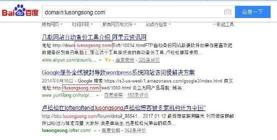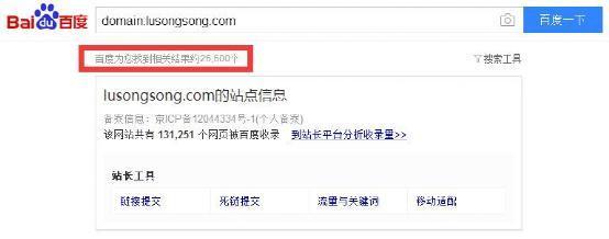 截至投稿时间,可以看到卢松松博客的反链为2.67万,站长工具与之匹配出来的检索相关结果正好一致。而这种所谓的反链却被不少的SEO人员误认为就是自身网站的外链。要想了解这类数据的来源,首先要理解搜索引擎里面的一个domain高级搜索指令。
