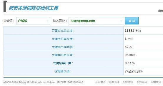 对于网页本身来说,是有多个DIV板块组成,常见的板块是头部、中间、底部位置三个板块而成。而头部可以有顶部、导航等等,中间根据网站的类型有多个DIV层构成。而底部多数则是底部导航和底部友情链接构成。假设你的页面出现的次数就像卢松松博客一样出现了32次(爱站数据),如果你把32个出现的关键词频次统一放到一个板块并且加粗,即使不是搜索引擎,就是用户一看也可以明了你网站在做刻意的关键词堆砌。所以密度不重要,重要的是你如何把出现的关键词频次能够有效的分布,并且做到自然化,即使你超过了8%。也不会因为这个要点被搜索引擎认定关键词堆砌作弊。但是多数SEO从业人员不会去刻意的思考这个问题,因为工具本身就有现成的密度计算方法。