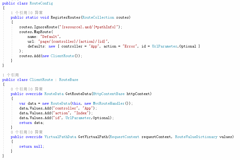 这样除了/page/打头的url外所有不满足默认路由的请求都会定位到/App/Index。