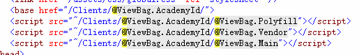 笔者的C#比较抠脚,所以定义了一个class来解析json文件,然后才把解析到的文件名放到ViewData中以供前端使用。现在视图中就可以使用Razer语法来渲染脚本依赖: