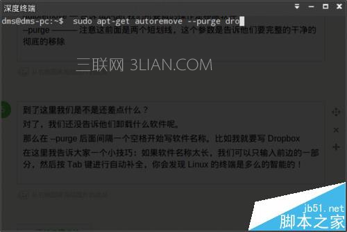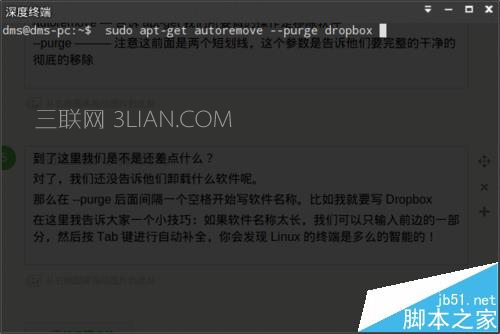 2、然后我们打开终端/命令行准备输入命令 Linux卸载Dropbox的教程