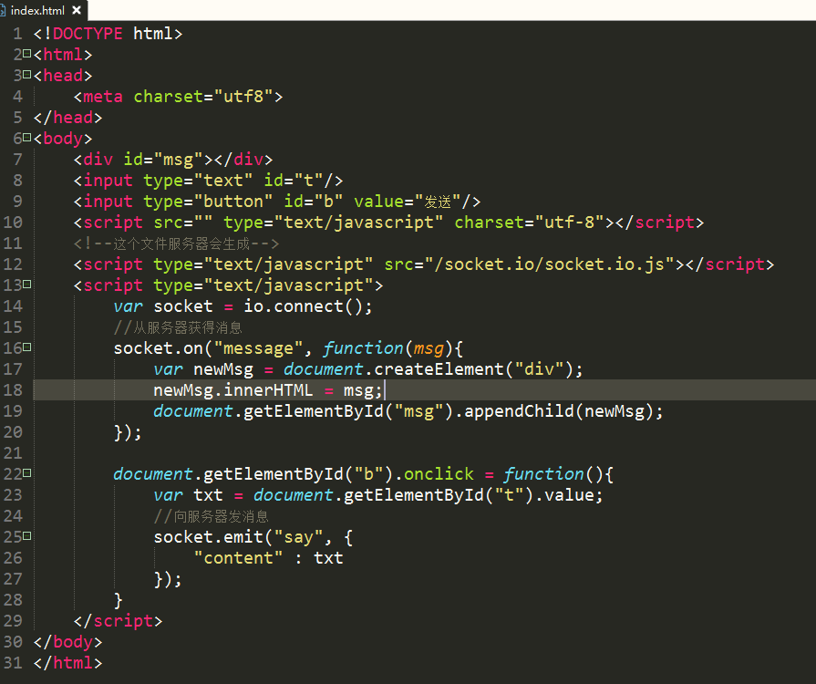4.继续执行 node sock.js 这命令 然后打开浏览器 输入地址 http://localhost:8080/ 就能看到以下画面